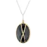 Mettez en valeur votre élégance avec ce collier en argent 925 de la marque Canyon, orné d'un ovale d'onyx noir serti de laiton et décoré de deux fils de laiton croisés.