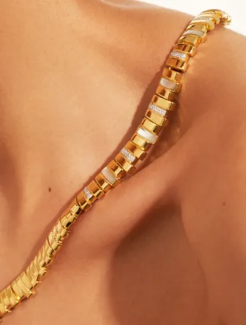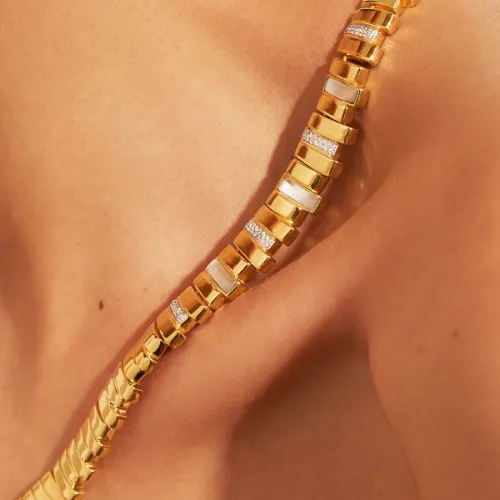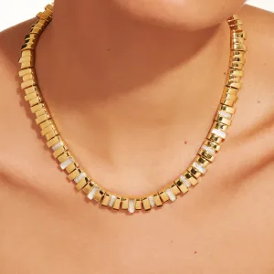 Sublimez votre cou avec le délicat collier Empreinte Nacre de Be Maad. Cette pièce élégante allie la finesse du laiton doré à l'or fin 18K et l'éclat naturel de la nacre blanche, une création française.