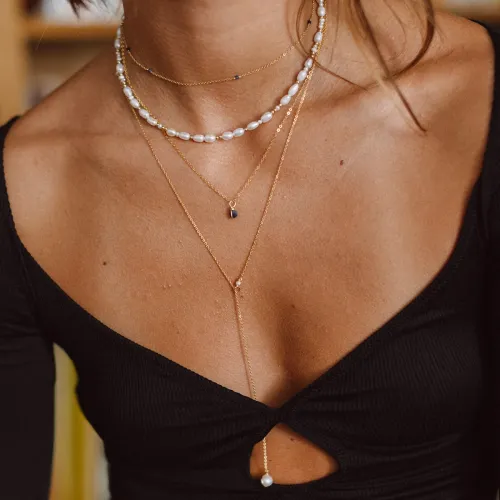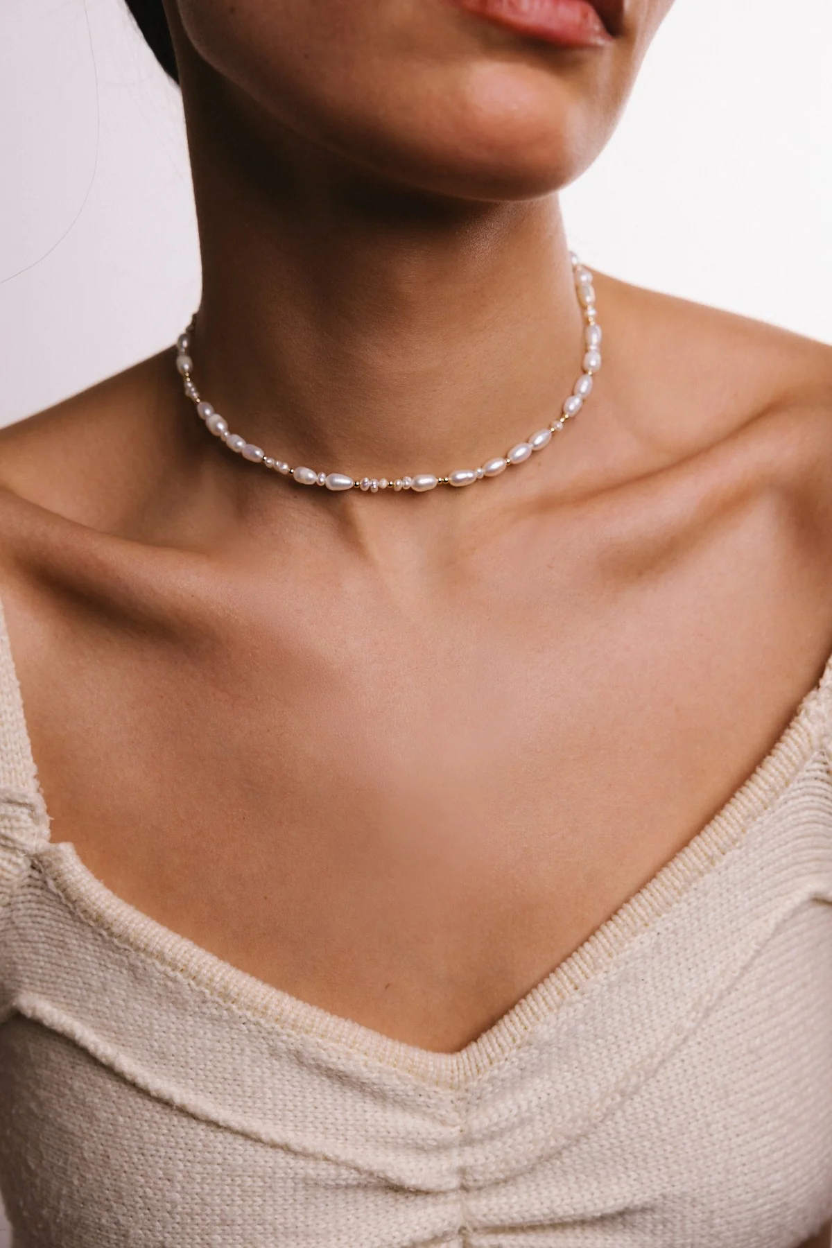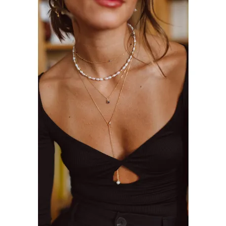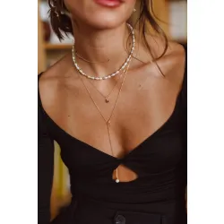 Ce bijou, véritable ode à l'artisanat, souligne la beauté et la diversité naturelles des perles avec des dimensions variant de 2 à 3,5 mm. La finesse des perles et la légèreté du design permettent de le porter seul en ras du cou ou en collier court, et de l’associer aisément avec d’autres colliers de notre collection pour un effet de superposition.