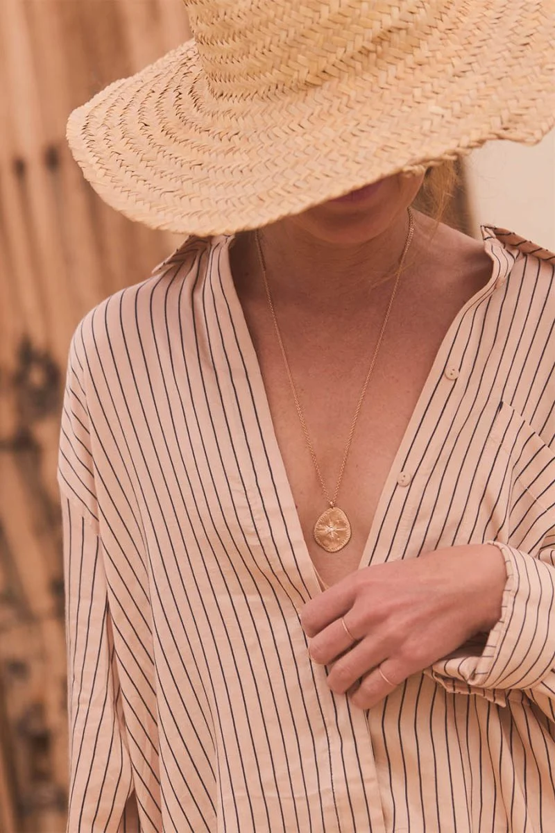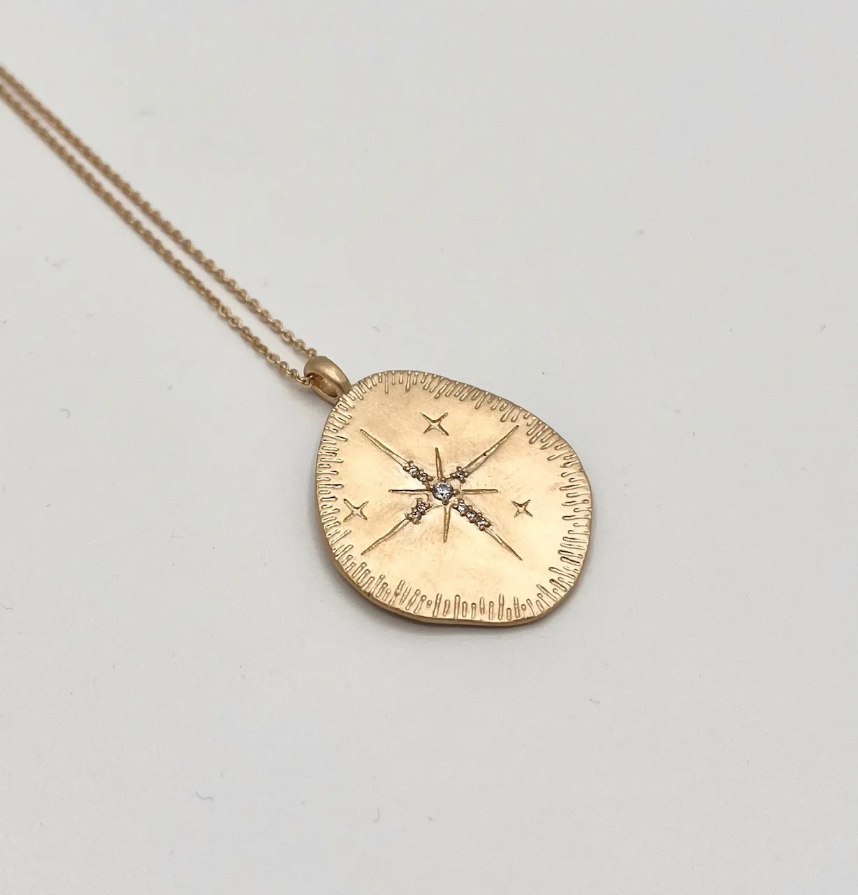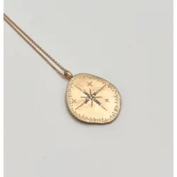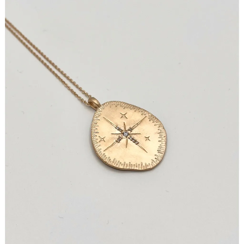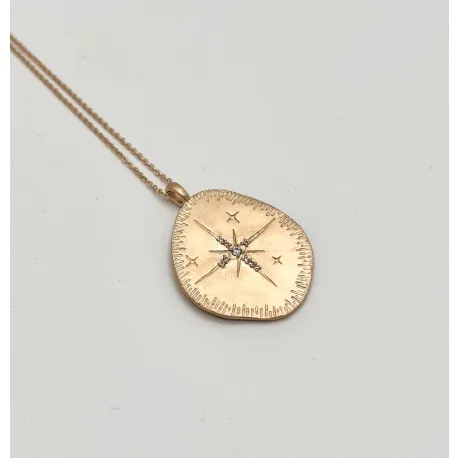 Découvrez le charme intemporel du collier médaille sautoir en plaqué or 18 carats. D'une élégance discrète avec sa finition dorée champagne et mate, le pendentif arbore une étoile gravée qui scintillera à chaque mouvement. Au verso, des mots délicatement gravés ajoutent une note personnelle et secrète à cet accessoire.