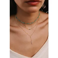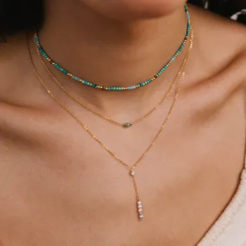 Invitez l'élégance et la luminosité dans votre collection de bijoux avec le collier long cravate, une pièce raffinée qui illumine chaque tenue avec ses accents naturels et précieux.