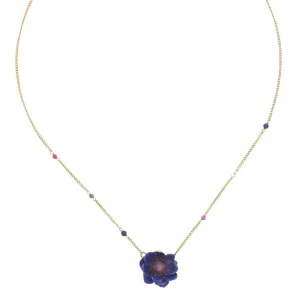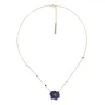 Embellissez votre style avec le Collier Mélina de Franck Herval, une création française exceptionnelle. Ce collier de 40 cm associe avec finesse l'améthyste, le lapis-lazuli, les perles de verre et la résine colorée, agrémenté de petites perles et d'une fleur bleu violet, le tout monté sur une chaîne en laiton.
