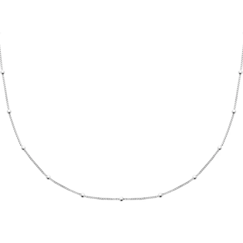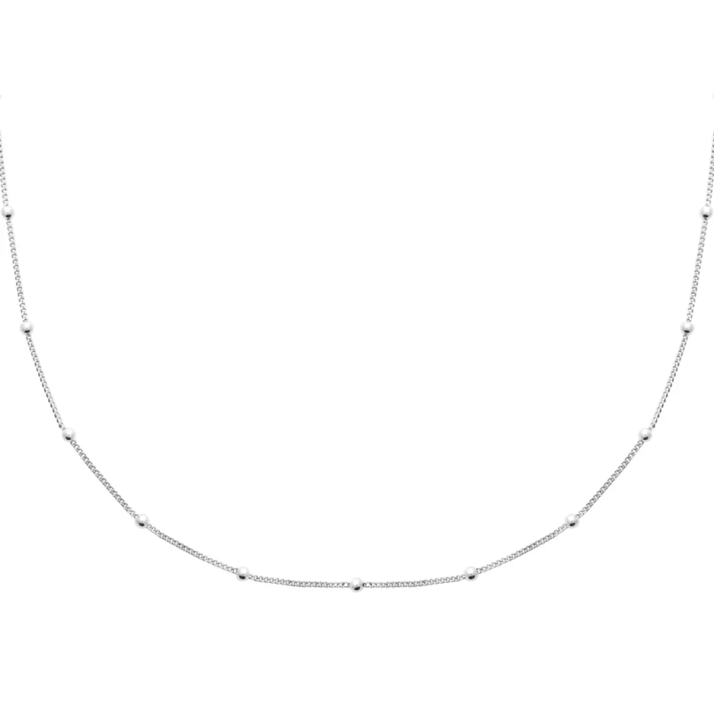 Le Collier petites billes d'argent, avec ses élégants billes intégrés le long de la chaîne, ajoute une touche de sophistication moderne à votre décolleté.