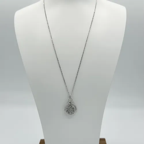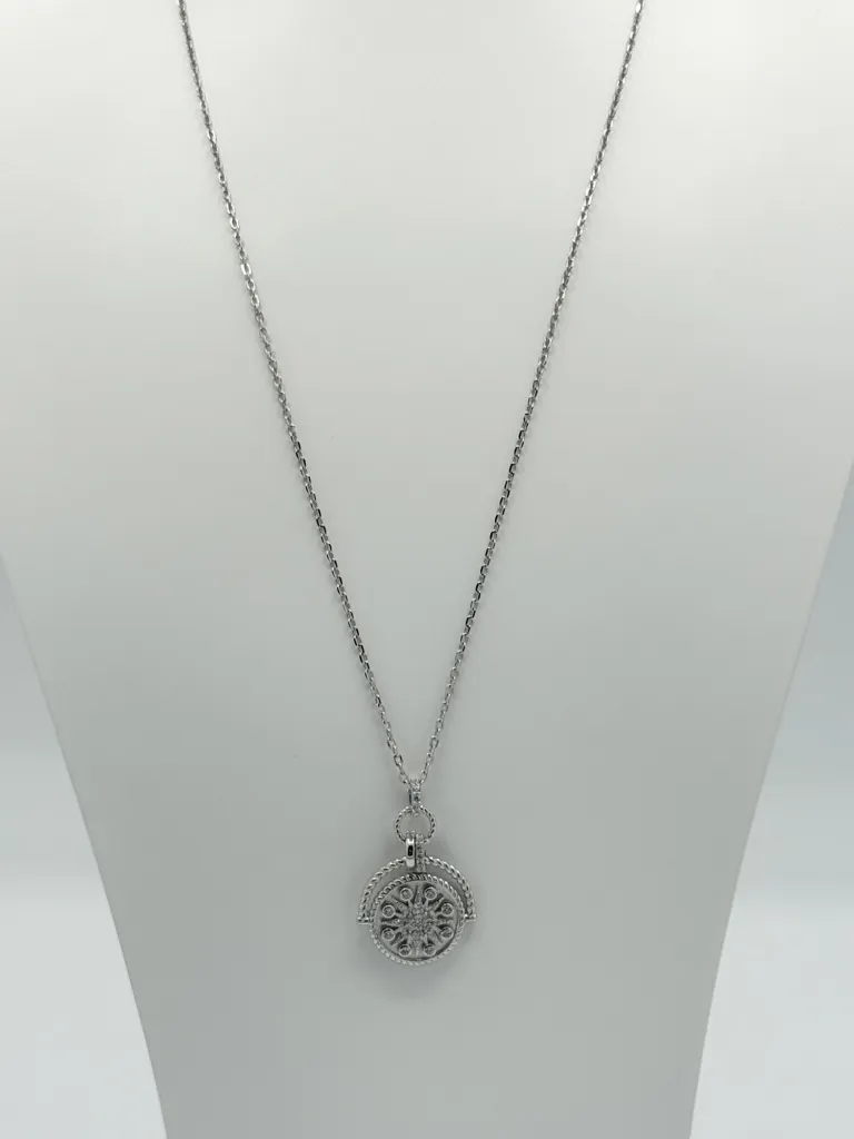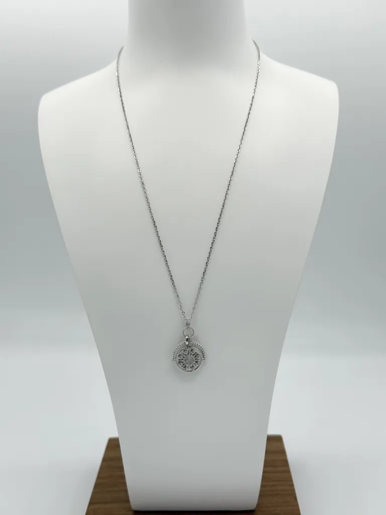 Laissez-vous charmer par le collier Rosace, une création française en argent 925 signée Guiot de Bourg. Avec sa longueur de 42 cm et sa chaîne ajustable, ce bijou saura sublimer votre décolleté.
