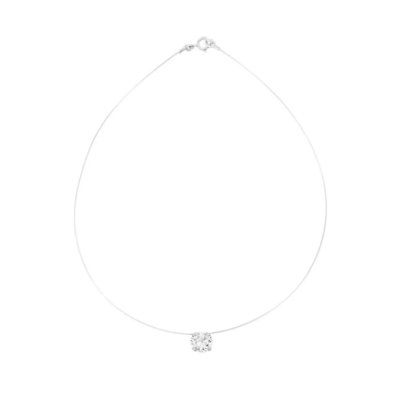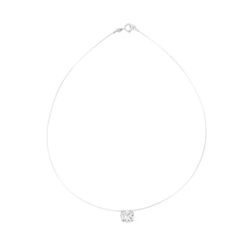 Le collier transparent de Guiot de Bourg, avec son design épuré en nylon, est élégamment serti de 4 griffes en argent 925 pour mettre en valeur une brillante oxyde de zirconium. Une création française raffinée qui allie modernité et grâce.