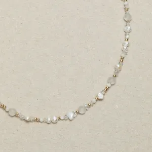 Le collier Vénus incarne une harmonie parfaite entre contraste et volume, prenant vie à travers une succession de fines pierres facettées. Chaque pierre, enfilée à la main avec une précision artistique, livre une alternance subtile de gabarits qui se traduit par une surface asymétrique et chatoyante. Ces reflets divins captivent et ajoutent une touche d’élégance remarquable à votre style.