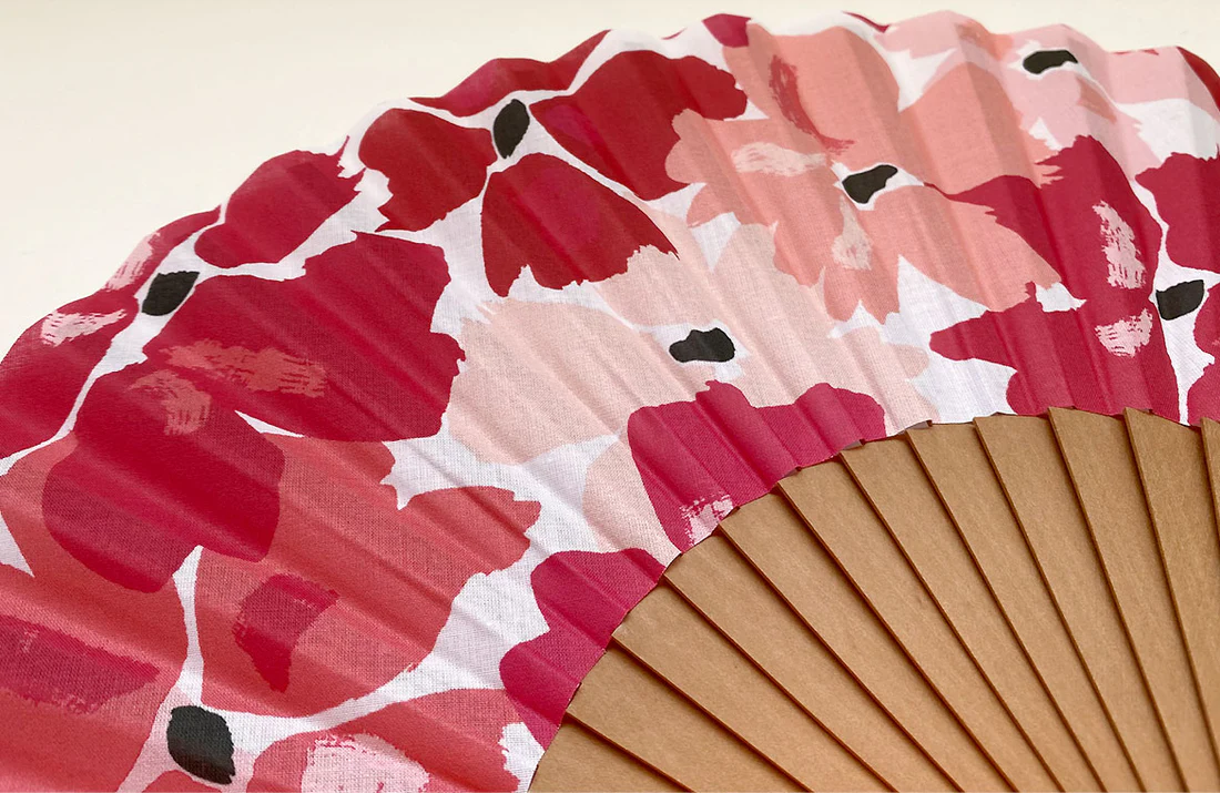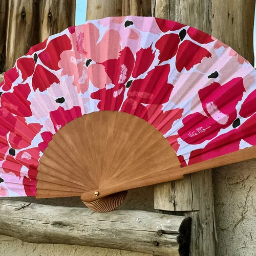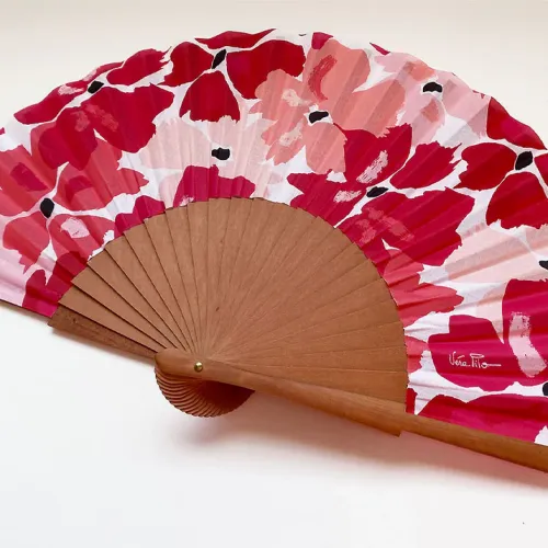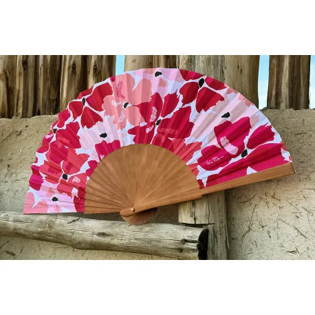 Laissez-vous séduire par la qualité exceptionnelle de sa fabrication, symbole du savoir-faire artisanal. Monture en bois de poirier, poli à la main. Feuille en coton 100% imprimé. Création française. Assemblés à la main en Espagne.