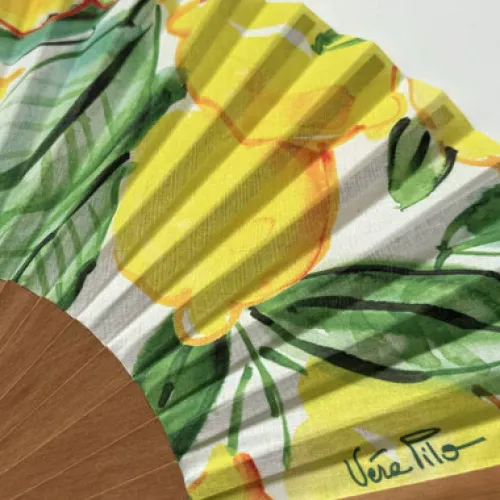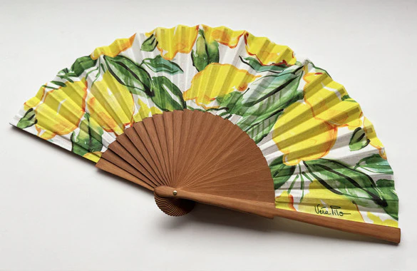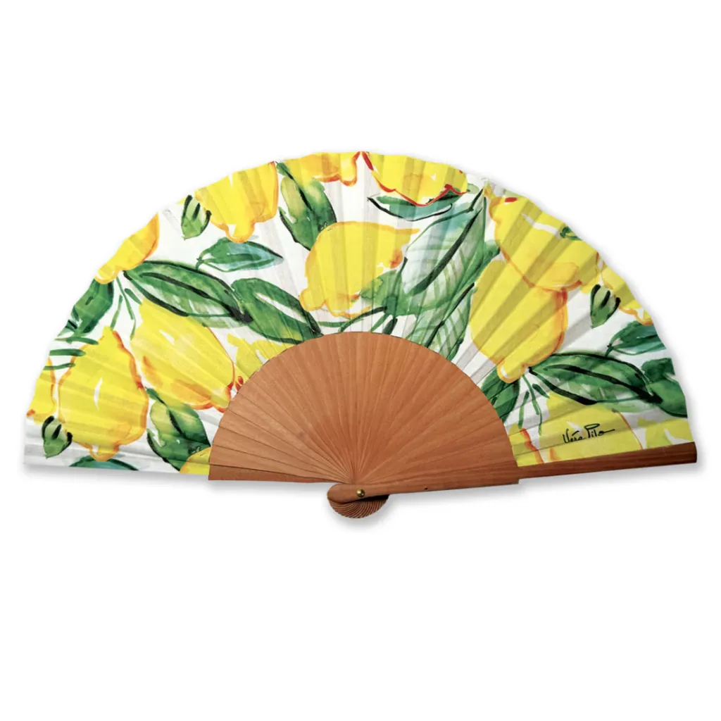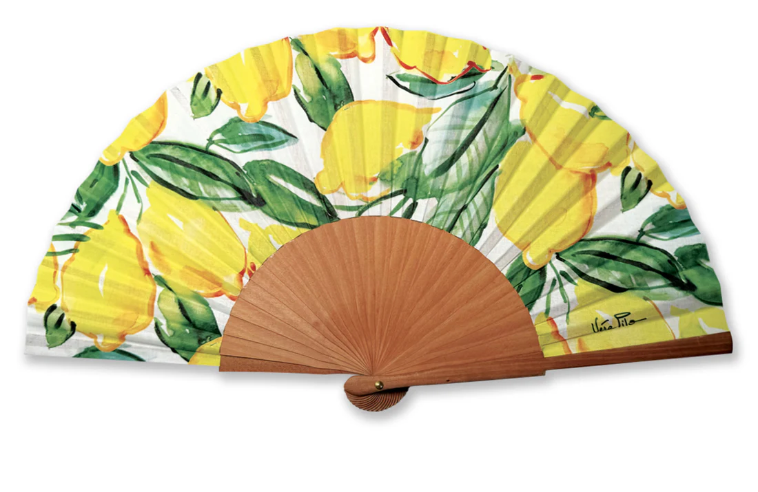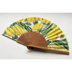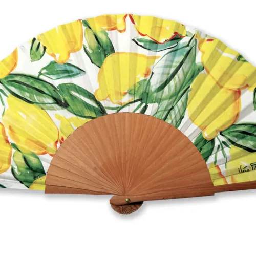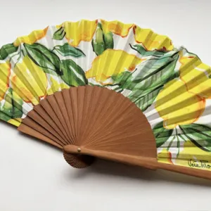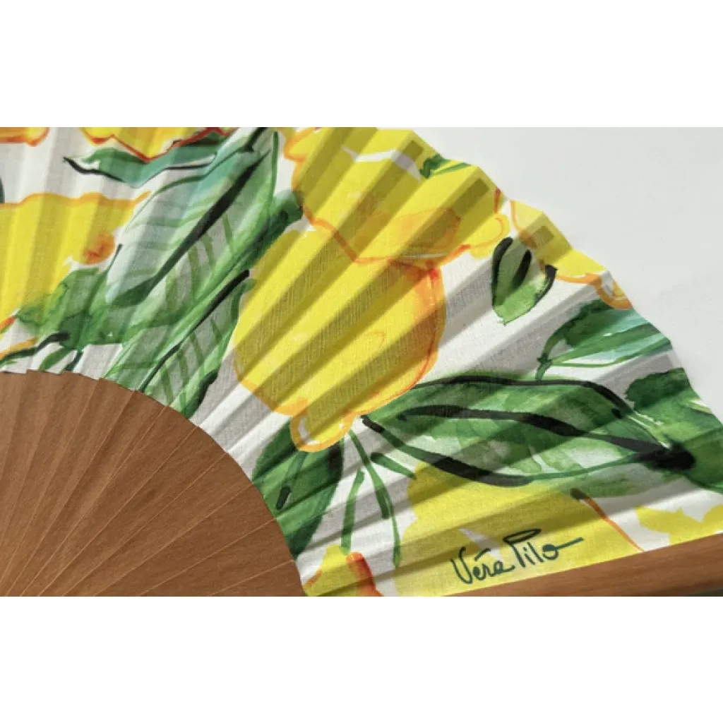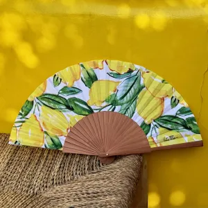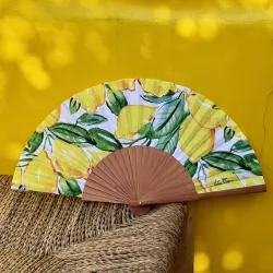 Ajoutez une touche de fraîcheur estivale à votre style avec l'éventail Limona, orné de motifs vibrants de citrons et de feuilles.