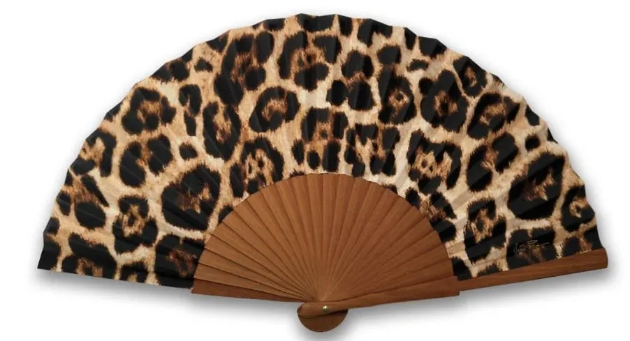 L'éventail Véra Pilo, motif Pantera, allie élégance et artisanat avec sa monture en bois de poirier poli à la main et sa feuille en coton imprimé. Une création française intemporelle, assemblée avec soin en Espagne.