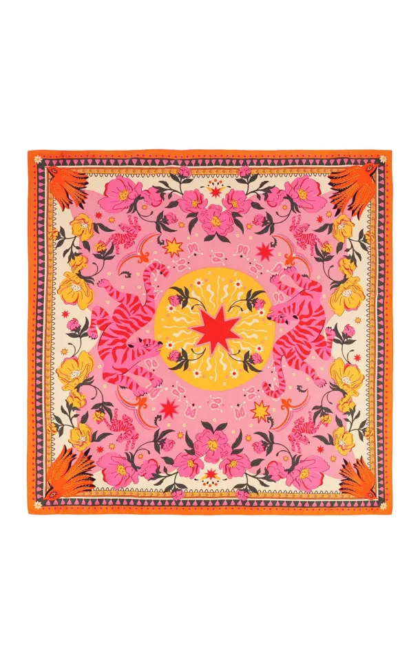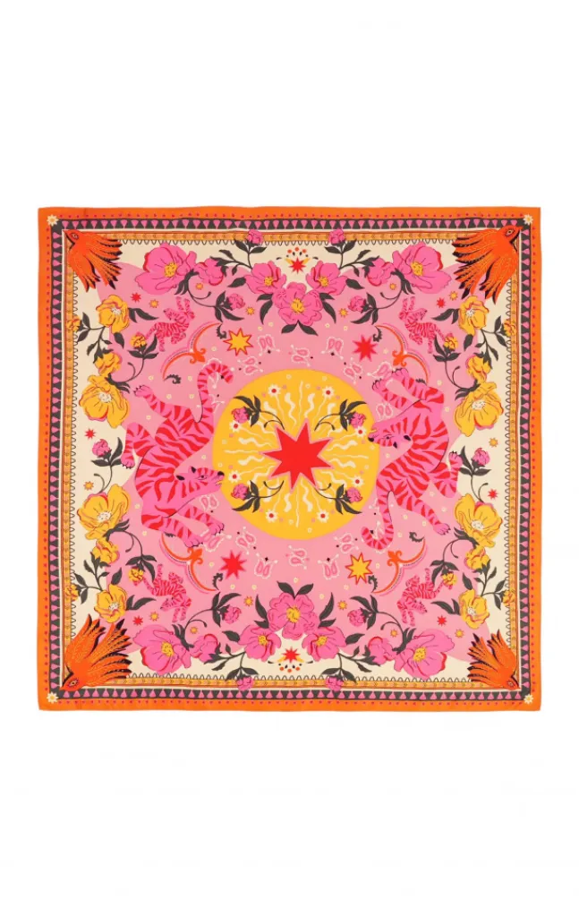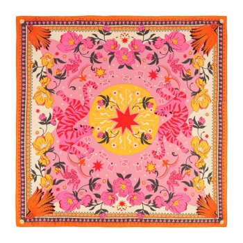 Le foulard Wild Bandidas rose est une célébration de l'été, transposée dans un accessoire élégant et délicat. Création française, ce foulard charme par ses motifs floraux estivaux qui évoquent la gaieté et le renouveau. Sa teinte rose douce et apaisante apporte une touche féminine et lumineuse à n'importe quelle tenue.