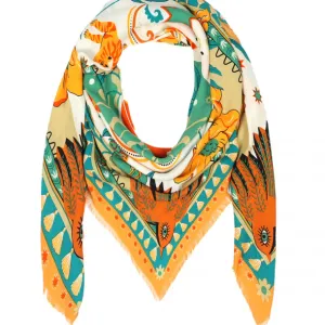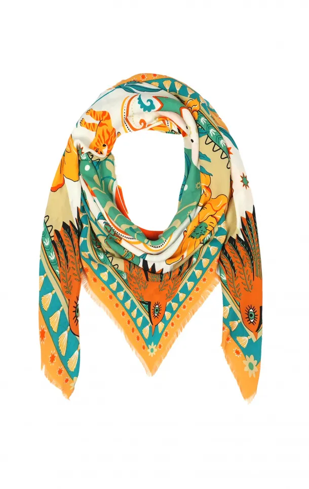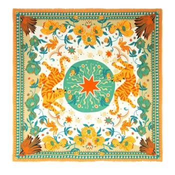 Arborant des motifs inspirés des contrées sauvages, ce foulard devient rapidement l'atout mode de votre dressing. Sa couleur verte profonde se marie aisément avec diverses tenues, ajoutant une note de fraîcheur et de raffinement.