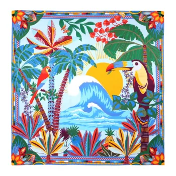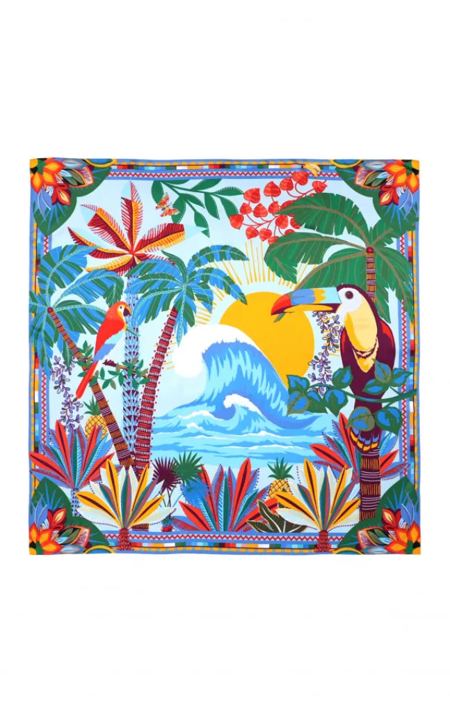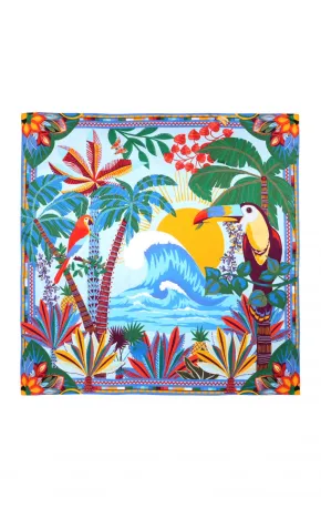 Embarquez pour une aventure tropicale avec le foulard Wild Hawaï bleu, un véritable chef-d'œuvre.