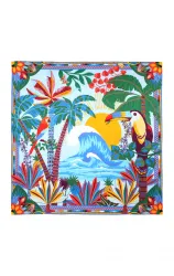 Inspirée par la beauté luxuriante des îles, cette pièce incroyablement détaillée évoque des paysages de rêve avec un mélange envoûtant de palmiers majestueux, d'oiseaux de paradis et de dattiers. Sa teinte bleue rafraîchissante rappelle les lagons étincelants et les cieux clairs, insufflant une note de tranquillité et de sophistication.