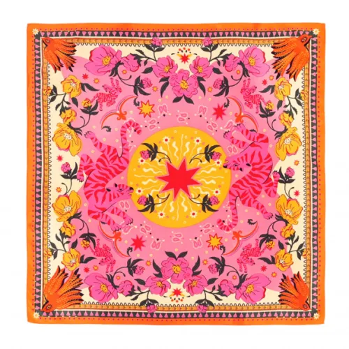 Exprimez votre côté audacieux avec le mini foulard Wild Bandidas rose. Ce foulard arbore un tigre docile et des fleurs estivales, ajoutant une touche de couleur et de fantaisie à votre look.