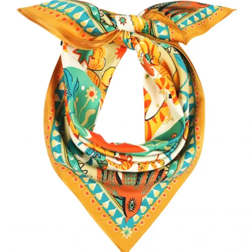 Polyvalent et expressif, ce foulard s’adapte à toutes les occasions : noué autour du cou pour une touche de fantaisie, en bandeau sophistiqué ou en accessoire élégant pour habiller votre sac à main. Son tissu doux et respectueux de l'environnement assure un confort sans pareil.
