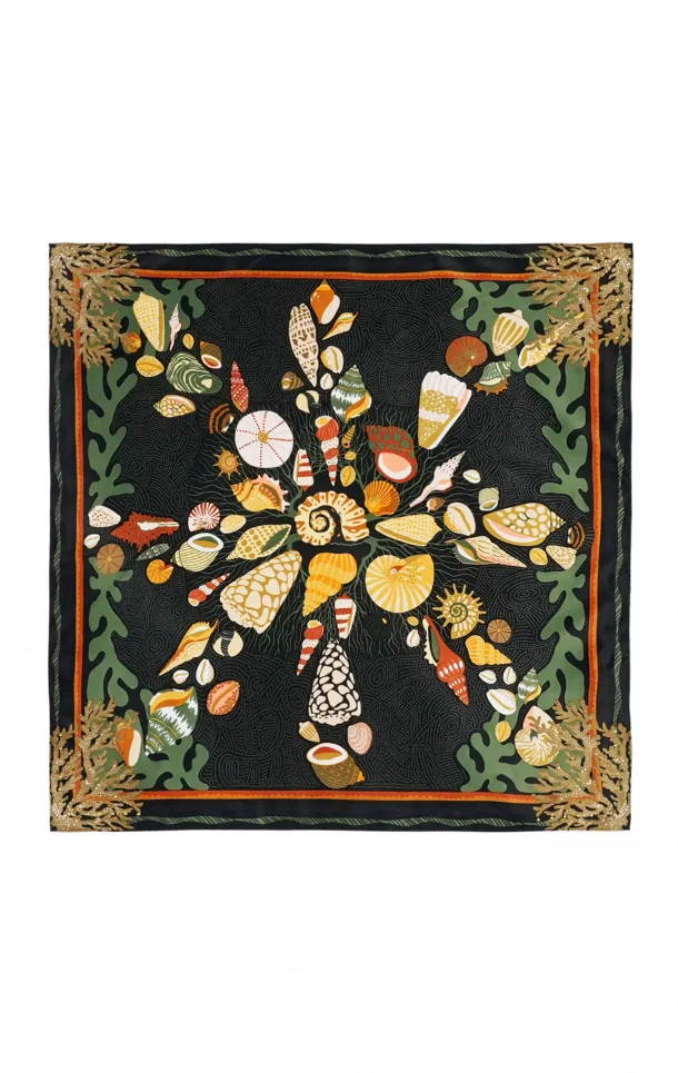 Son motif inspiré par la richesse des fonds marins et des coraux crée une harmonie entre mystère et élégance. Ce foulard black-out rehaussera efficacement vos tenues avec son design chic et intemporel.