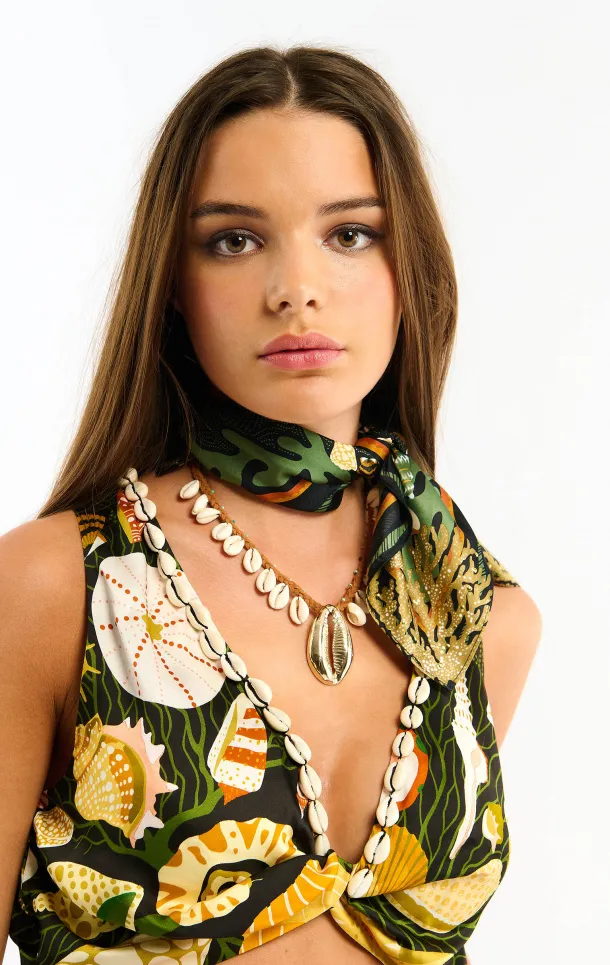 Porté autour du cou, en bandeau pour les cheveux ou même noué à votre sac à main, il s’adapte à vos envies et ajoute une touche de sophistication à votre quotidien. Faites honneur à l’héritage marin avec cette pièce unique, avec la beauté des profondeurs océaniques.