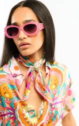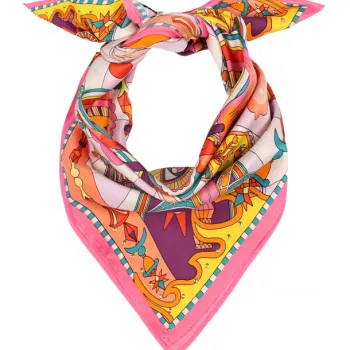 Ce foulard de 55x55 cm, avec sa texture légère et sa finition minutieuse, confère élégance et raffinement à toutes vos tenues. Que vous choisissiez de le porter autour du cou, noué dans vos cheveux, ou attaché à votre sac préféré, le mini foulard Enchantered Rose deviendra l'accessoire indispensable pour exprimer votre style unique et sophistiqué.