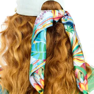 Évadez-vous vers des horizons exotiques avec le mini foulard Wild Hawaï bleu. Ce foulard capture la richesse d'une nature tropicale grâce à son mélange enchanteur de palmiers.