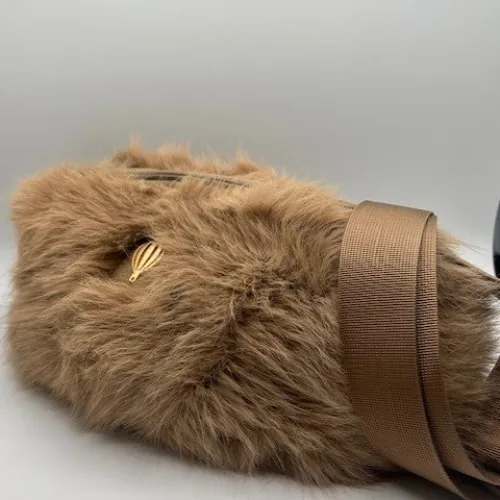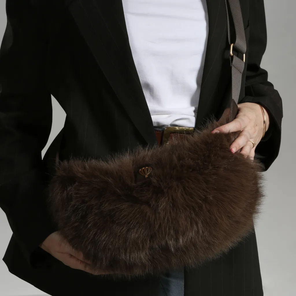 Osez la touche cocooning avec ce sac porté travers en effet fourrure ultra douce signé Le Voyage en Panier. Son look tendance et chaleureux, rehaussé d’accessoires en or mat, apporte une note irrésistible à vos tenues hivernales.