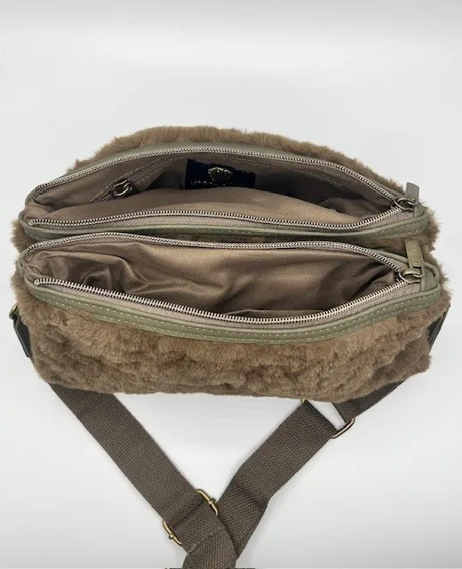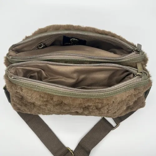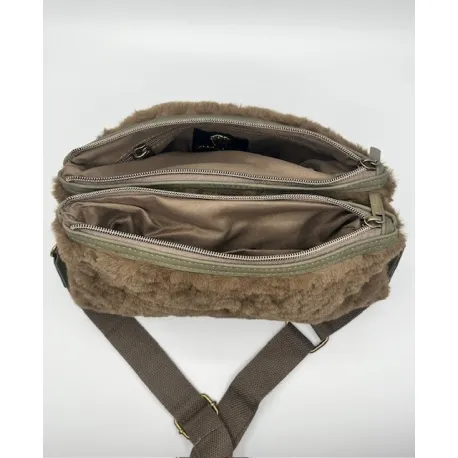 Affrontez l'hiver avec élégance et confort grâce à ce sac porté en travers signé "Le Voyage en Panier". Conçu dans une matière effet fourrure bouclée, il enveloppe vos mains de douceur avec son manchon intégré, idéal pour rester bien au chaud lors des journées fraîches. Sa texture réconfortante et son design fonctionnel font de lui un compagnon parfait pour l'hiver.